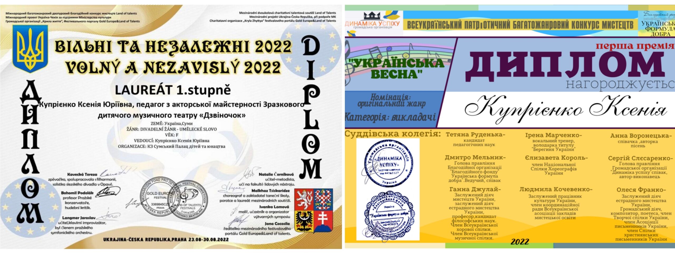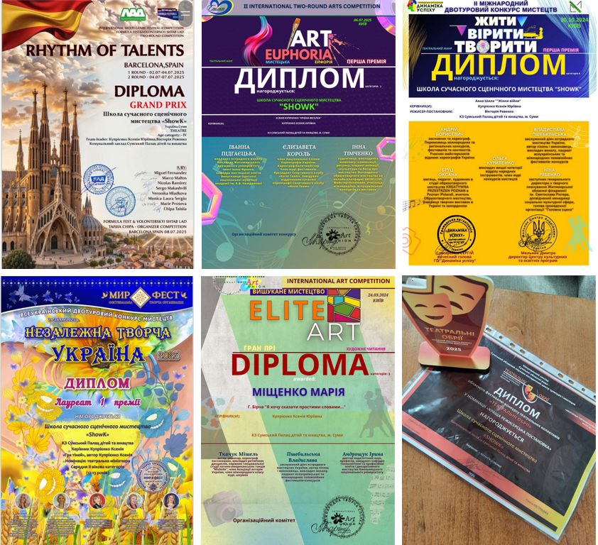Колектив бере активну участь у мистецьких конкурсах і фестивалях. Першу нагороду саме у ролі ведучих здобули на Всеукраїнському відкритому фестивалі-майстерні «Адреса дитинства – Гра» за найкреативнішу ідею і відеороботу проведення свята в «несвяткових умовах».