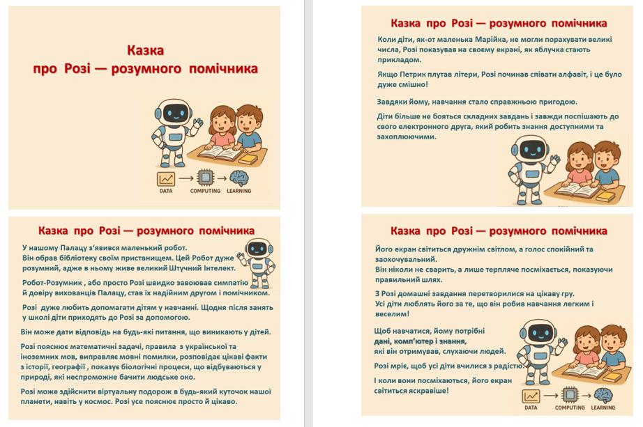 «Штучний Інтелект»: учасники розкрили свою творчість, складаючи казки про роботів, моделюючи та називаючи власних роботів, а також створюючи робота-помічника «Мандрівник знань».