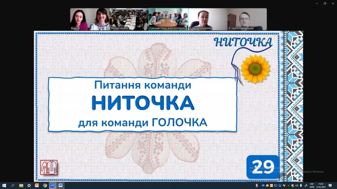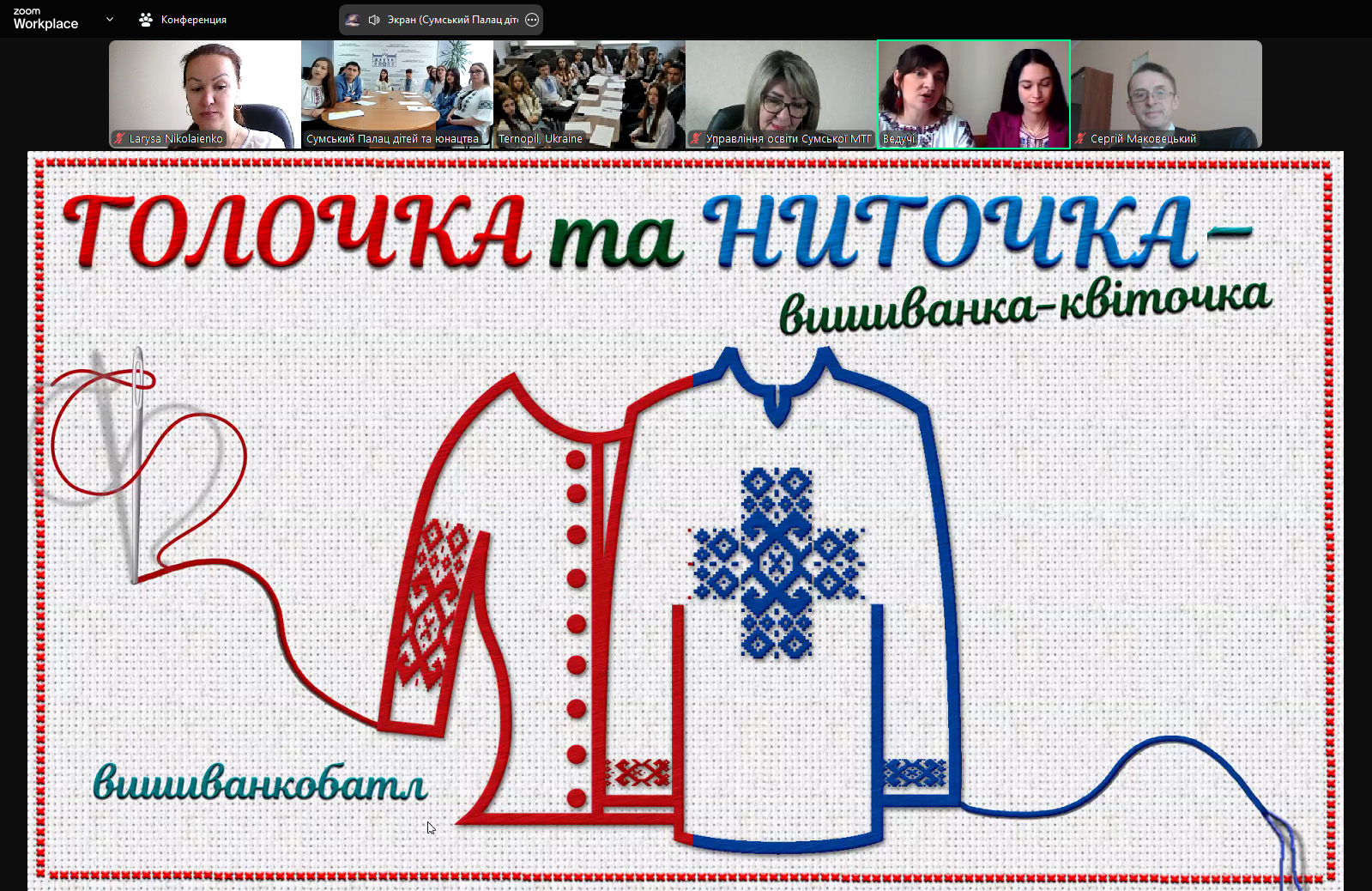 15 травня відзначаємо Всесвітній день вишиванки, з нагоди якого в онлайн-режимі відбувся інтерактивний вишиванкобатл «Голочка та ниточка – вишиванка-квіточка». Цьогоріч у межах національного проєкту «Пліч-о-Пліч: згуртовані громади» вишиванка через гру об’єднала учнівську молодь міста Суми і Тернополя, щоб познайомитися, поспілкуватися, а головне – корисно і пізнавально провести час.