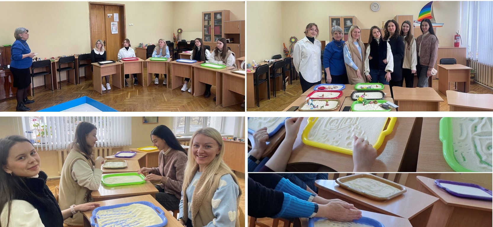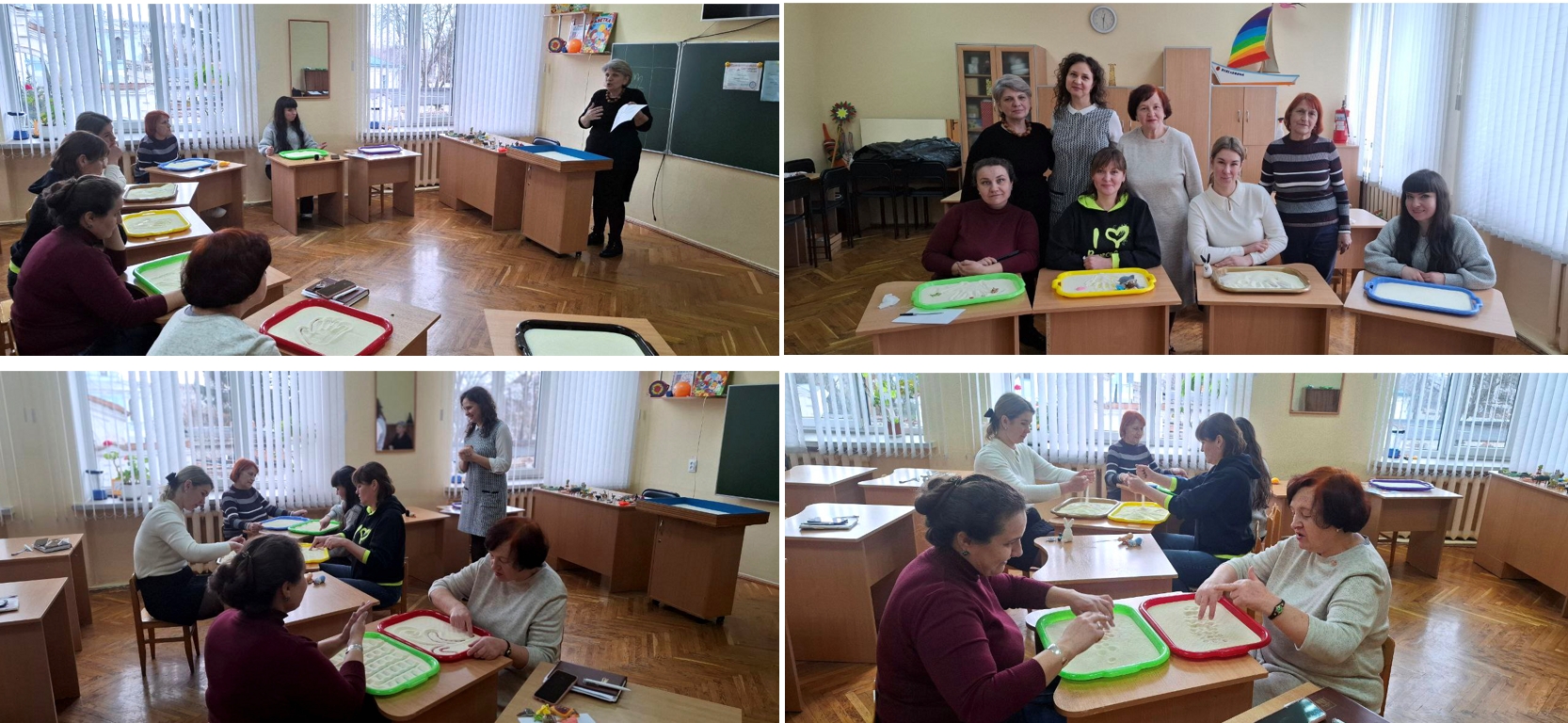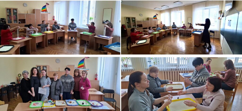 Протягом 2-х місяців (березень-квітень) у межах проєкту “Простір для педагогічної творчості “RelaxHab” для педагогів закладу” було проведено заняття з пісочного релаксу: “Sand Play – можливість спілкування зі світом та собою”.