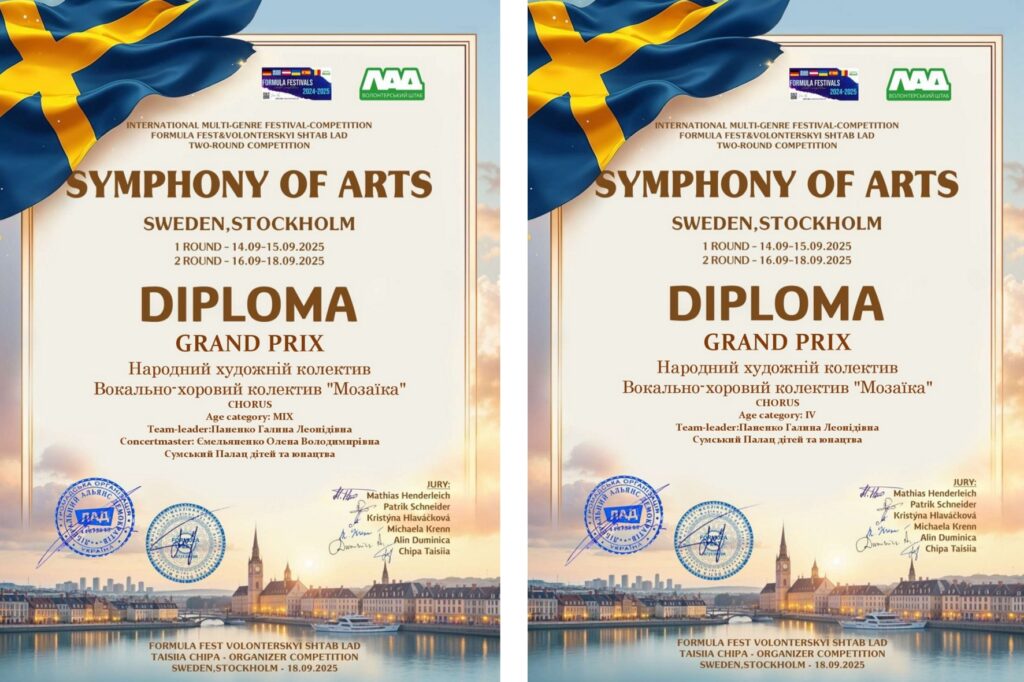 Народний Вокально-хоровий колектив “Мозаїка” взяв участь у Міжнародному конкурсі в м. Стокгольм (Швеція).  У IV та змішаній вікових категоріях колектив виборов найвищі нагороди – гран-прі в International Multy-Genre Festival-Competition Formula Fest & Volonterskyi Shab Lab Two-Round Competition.