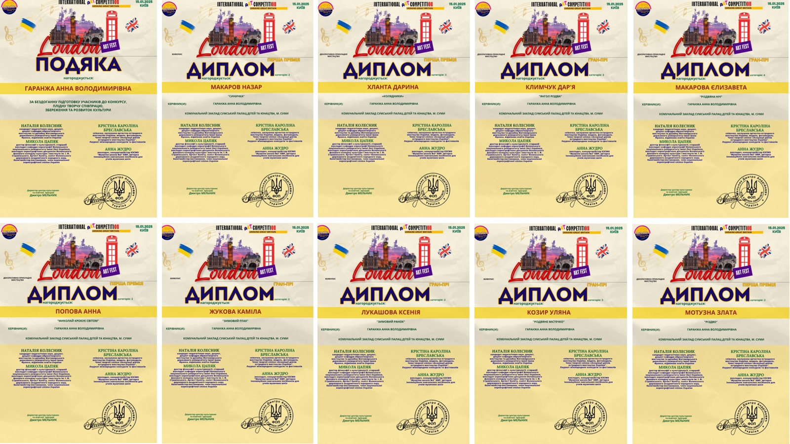 Вихованці народного художнього колективу Студії образотворчого мистецтва “Країна мистецтва” здобули перемогу в міжнародному конкурсі мистецтв “International Art Competition” (Ukraine-Great Britain).